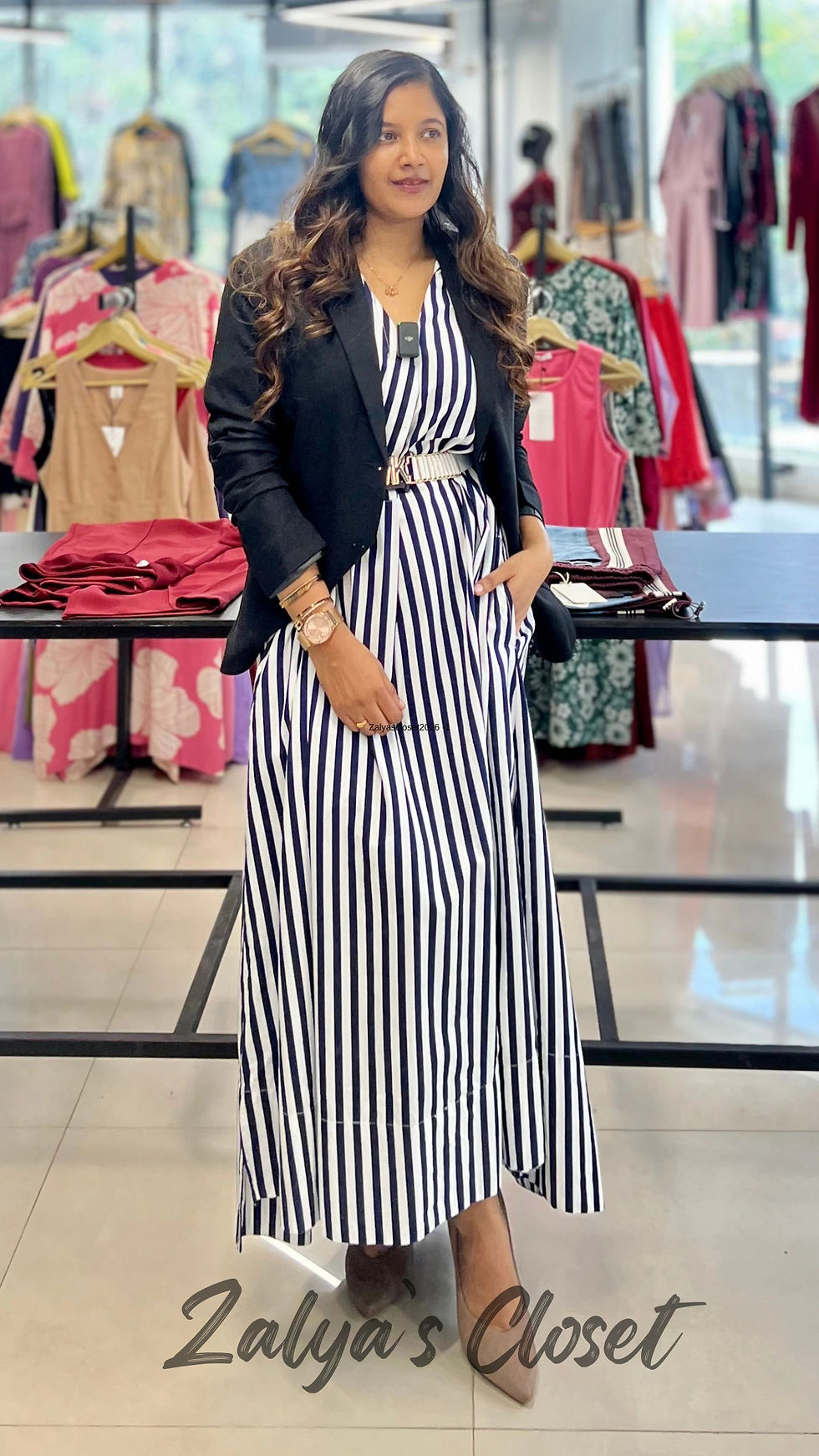 Imported Blazer And Printed Slip Dress