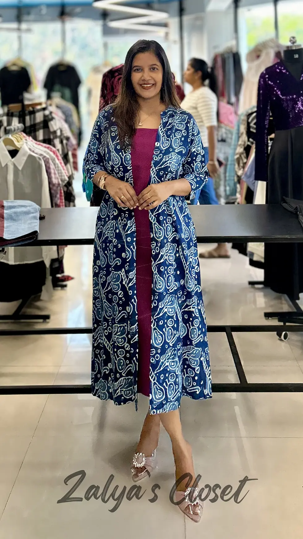 Pure Cotton Pink Kurti With Natural Dyed Long Jacket